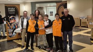 Por otra parte, el Coimbra Jumilla “H” un equipo de canteranos que partía del ranking inicial en la posición 39ª realizó un sensacional campeonato, logrando 9 puntos y finalizando en el 11º lugar, a un solo punto de conseguir la 5ª plaza, lo que demuestra la buena salud de la que goza la cantera coimbrera. Este bagaje supuso para el joven equipo formado por Pascual López, David Pérez, Salvador Bleda y Adrián Tomás, el premio a Mejor Equipo sub-1600, muy lejos del siguiente equipo de esta categoría (también del C.A Coimbra Jumilla) que finalizó en la posición 29, lo que se traduce en un total dominio de este tramo de ELO.