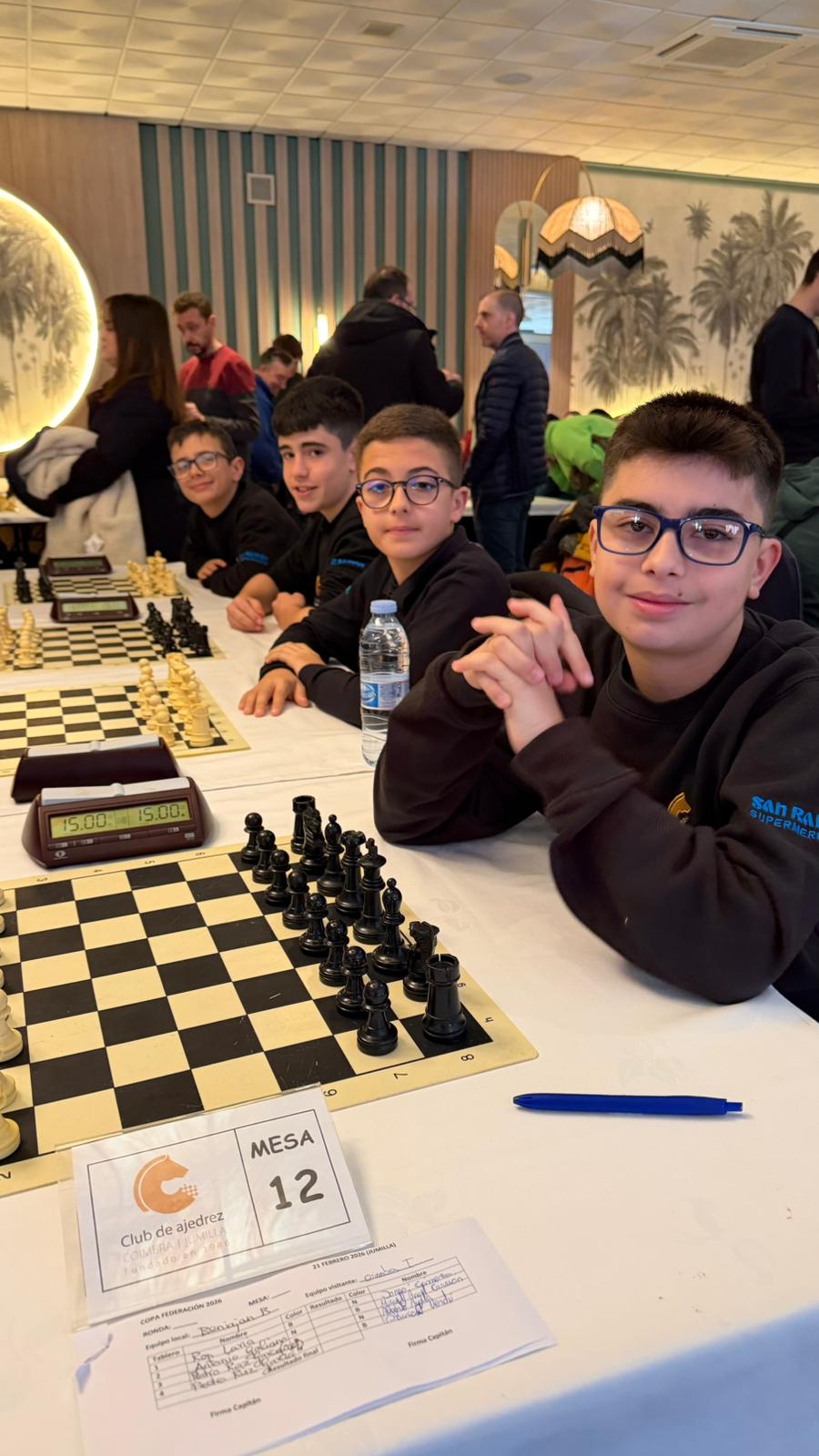 Agradecimiento al Ayuntamiento de Jumilla por su constante apoyo y al Salón de Celebraciones Media Luna y la Federación de Ajedrez de la Región de Murcia por un Campeonato Regional fantásticamente organizado en unas instalaciones fabulosas para el disfrute tanto de jugadores como de acompañantes. Lo ocurrido en Jumilla no fue solo una victoria, fue la confirmación de una realidad: el Coimbra Jumilla ya es campeón… y quiere seguir siéndolo.