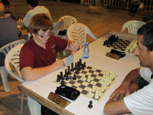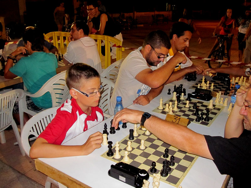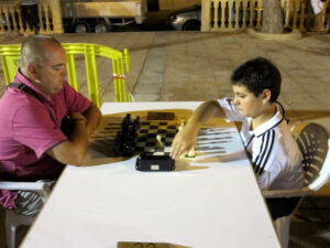 El open, que se celebró al aire libre en la plaza principal, comenzó sobre las 9 de la noche y se alargó hasta las 2 de la madrugada y estuvo envuelto en un magnífico ambiente con una muy buena organización, como suele ser habitual, por el Club de Ajedrez Skull’s. Hasta allí se desplazaron ocho jugadores del Coimbra-Jumilla que realizaron una buena actuación y donde volvieron a brillar los más jóvenes.