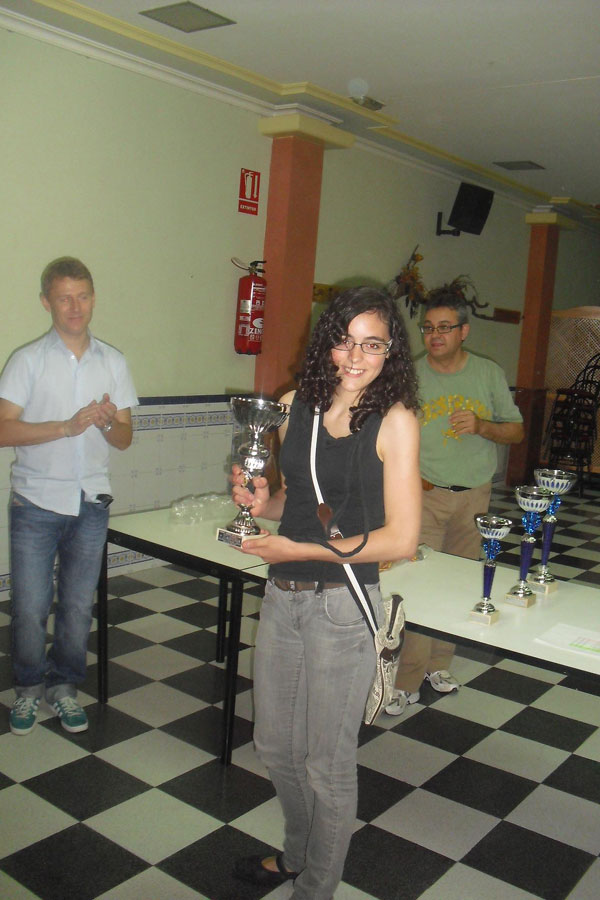 Puesto Nombre Club Puntos Buch.-M Buch. Progr. 1 Pablo MOLLA GIL Almansa 5.5 20.0 21.5 20.5 2 Pedro D. GONZALEZ GOMEZ Coimbra-Jumilla 5 19.5 20.0 16.0 3 Juan S. PEREZ HERNANDEZ Coimbra-Jumilla 4 20.5 22.0 16.0 4 Carlos CUENCA LOPEZ Almansa 4 19.5 21.0 16.0 5 Lauri VERDU GARCIA Coimbra-Jumilla 4 19.0 21.0 14.0 6 Kiko PIQUERAS GUARDIOLA Coimbra-Jumilla 4 18.0 19.5 15.0 7 Juan FITO MICO Almansa 4 15.5 17.0 14.0 8 Alejandro CASTELLANOS GOMEZ Coimbra-Jumilla 3.5 16.5 18.5 13.5 9 Adrian CASTILLO GARCIA Almansa 3 18.5 20.0 12.0 10 Javier DUARTE GARCIA Guadalupe 3 16.0 16.5 10.0 11 Pablo MARTINEZ SANCHEZ Montealegre 3 16.0 16.5 6.0 12 Angel GIL ALAMO Coimbra-Jumilla 2 17.0 18.5 9.0 13 Salvador MARTINEZ LOSA Coimbra-Jumilla 2 16.5 17.0 3.0 14 Jesus MARTINEZ PEREZ Coimbra-Jumilla 2 16.0 17.5 6.0 15 Angela M. RICO GUARDIOLA Coimbra-Jumilla 2 15.0 16.5 6.0 16 Alejandro ROCAMORA FERNANDEZ Murcia 2 13.0 13.5 7.0 17 Raquel TOMAS ALONSO Jumilla 1 15.0 16.5 5.0