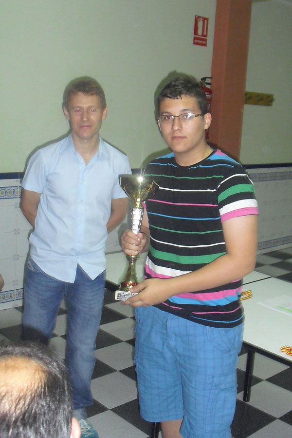 Puesto Nombre Club Puntos Buch.-M Buch. Progr. 1 SANCHEZ SERRANO, Emilio (14) Montealegre 5.5 18.5 20.0 20.0 2 MARTINEZ SANCHEZ, Jorge (9) Montealegre 4.5 19.0 20.5 14.0 3 COLCHERO TRUNIGER, Nicolas (2) Guadalupe 4.5 17.0 19.0 14.0 4 GARCIA BAS, Javier (6) Coimbra-Jumilla 4 19.5 21.0 17.0 5 POVEDA OLIVARES, Jose (11) Coimbra-Jumilla 4 18.5 20.0 15.0 6 TARRAGA NAVARRO, Pablo (15) Almansa 3.5 18.5 19.5 13.0 7 CASTELLANOS GOMEZ, Elena (1) Coimbra-Jumilla 3 16.5 17.5 11.0 8 LOPEZ VICENTE, Lucia (7) Coimbra-Jumilla 3 14.5 16.0 8.5 9 RICO GUARDIOLA, Javier (12) Jumilla 2.5 18.5 20.5 12.0 10 COLCHERO TRUNIGER, Sara (3) Guadalupe 2 18.5 19.5 10.0 11 DUARTE GARCIA, Carmen (4) Guadalupe 2 16.5 17.5 5.0 12 FERNANDEZ LOZANO, Maria J. (5) Jumilla 2 12.0 13.0 6.5 13 RICO GUARDIOLA, Ernesto J. (13) Coimbra-Jumilla 1.5 15.5 16.5 2.0 14 MARTINEZ BAS, Alvaro (8) Coimbra-Jumilla 1 11.5 13.0 5.0 15 MONTEBLANCO PIÑERO, Raul S. (10) Albacete 0 1.5 1.5 0.0